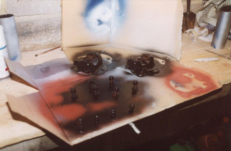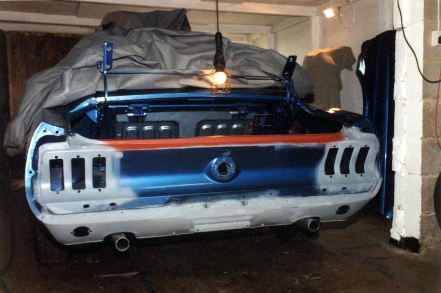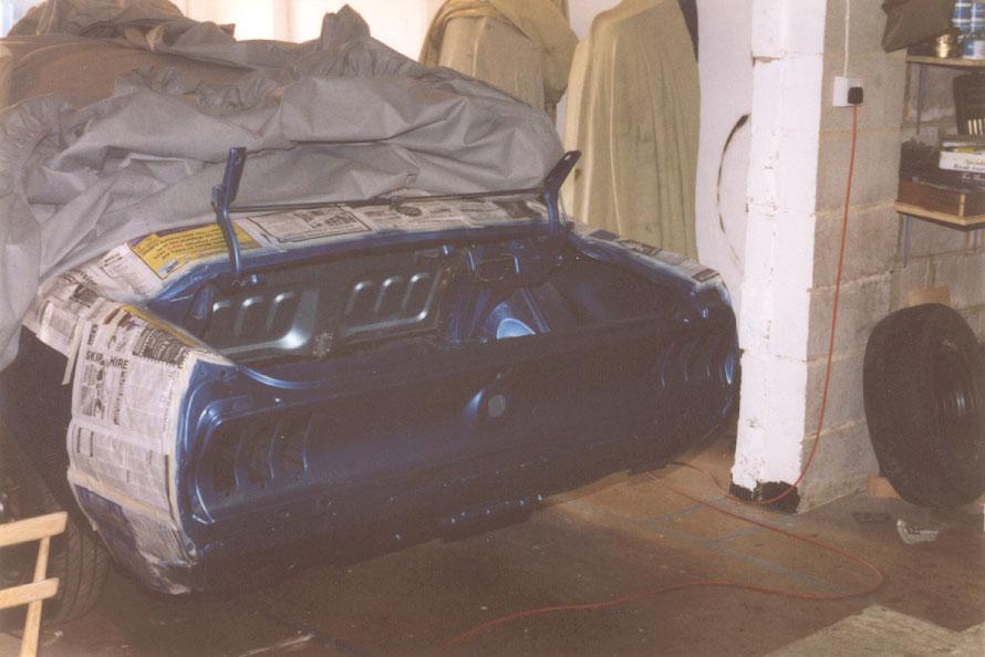 Next I started to respray the rear of the car using custom-made aerosol's from AutoPaint International of Luton.